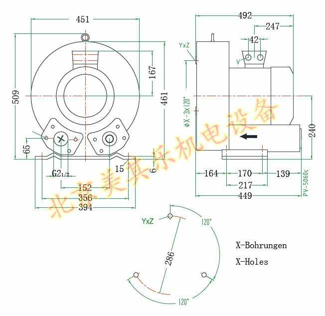 7.5kw漩渦氣泵尺寸圖: